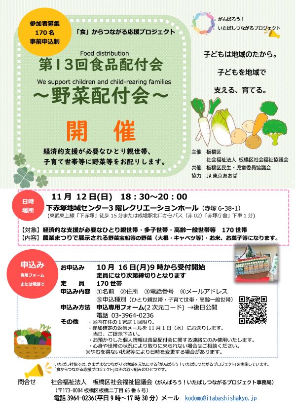 2024 0107 CSR 「第13回食品配布会」 に寄贈を行いました。 板橋区社会福祉協議会主催「第13回食品配布会」 に寄贈を行いました。 Post Share Hatena Line RSS feedly Pin it note CSR コメント: 0 「第12回食品配布会」に寄贈を行いました。 前の記事 「FELLOWS仲間・子どもミュージカル 第2回公演」に寄贈を行いました。 次の記事